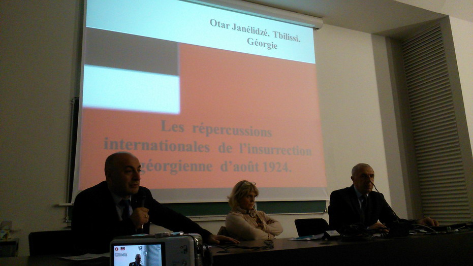 Retentissement international de l’insurrection du mois d’août 1924 par Otar Janèlidze Traduit du Géorgien par Mzaro Dokhtourichvili Lecteur : Gotcha Djavakhichvili Exposé fait à lors du colloque co-organisé par l'Inalco & l'Institut Noè Jordania à Paris le 13 décembre 2014 Voir toutes le photos de la présentation Aux mois de février-mars 1921, à la suite de l’agression militaire de la part de la Russie soviétique, la souveraineté étatique de la Géorgie prit fin. La République démocratique de Géorgie, reconnue de juré par plus de 20 Etats du monde, fut renversée. Le peuple géorgien ne pouvant supporter cette violence brutale, s’opposa énergiquement au régime impérial bolchévique. Le gouvernement de la République démocratique et les partis politiques en émigration s’efforçaient de porter au devant de l’actualité la question géorgienne à l’étranger, et cherchaient leurs partisans et alliés. Grâce à leurs efforts, le mouvement national de libération en cours en Géorgie, se trouva immédiatement au centre de l’attention internationale. Noé Jordania fit un discours spécial devant les représentants des partis socialistes et travaillistes de France, de Belgique et d’Angleterre. Karlo Chkhéidzé et Noé Ramishvili se rendirent en visite spéciale à Varsovie, à Berlin, rencontrèrent les représentants des partis dirigeants et des gouvernements de la Pologne et de l’Allemagne. Karlo Chkhéidzé participa également à la conférence de l’Internationale socialiste organisée à Copenhague, Evguéni Guéguéchkori et Simon Mdivani rendirent visite à des hommes politiques socialistes célèbres en Italie, etc. Les publications des leaders sociaux-démocrates géorgiens dans la presse étrangère, des livres édités en français, en anglais et en allemand qui rassemblent le matériau significatif portant sur la situation de la Géorgie sous l’occupation soviétique, etc., avaient une importance particulière. Les congrès, les réunions des partis travaillistes et socialistes européens prenaient des résolutions soutenant la Géorgie. Ils condamnaient l’occupation d’un pays libre, démocratique, ils revendiquaient le retrait des armées bolchéviques et la restauration de l’indépendance de la Géorgie. Nombreux étaient les articles pleins de compassion envers la Géorgie qui étaient publiés dans la presse occidentale. La lutte menée en Géorgie trouva un retentissement et de la compassion dans les Etats européens opposés au régime soviétique, à savoir en France, en Pologne, en Italie, etc. L’opinion publique de l’Occident était imprégnée de bienveillance envers la Géorgie occupée, elle était solidaire de la nation géorgienne inflexible, inconciliable envers l’envahisseur , qui luttait pour la liberté . Le soutien de ce type était un stimulant moral appréciable, mais il n’était pas du tout suffisant pour régler le problème national de la Géorgie. Comme le remarquait Akaki Chkhenkéli déjà en 1922 : « La compassion pour la nation géorgienne restait toujours en vigueur en Europe, mais elle ne se transformait pas en action ». Face à l’indifférence politique générale envers la Géorgie, le gouvernement de la France faisait une exception bienvenue (le Président Millerand, les ministères de Briand et de Poincaré) essayant de soutenir le gouvernement en émigration.