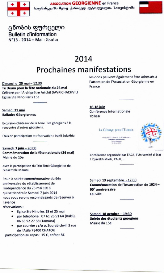 Bulletin de l'Association Géorgienne en France et Événements