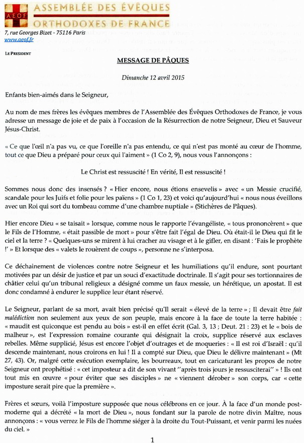 l’annonce salvatrice: «Christ est ressuscité!» Pour nous les orthodoxes,
