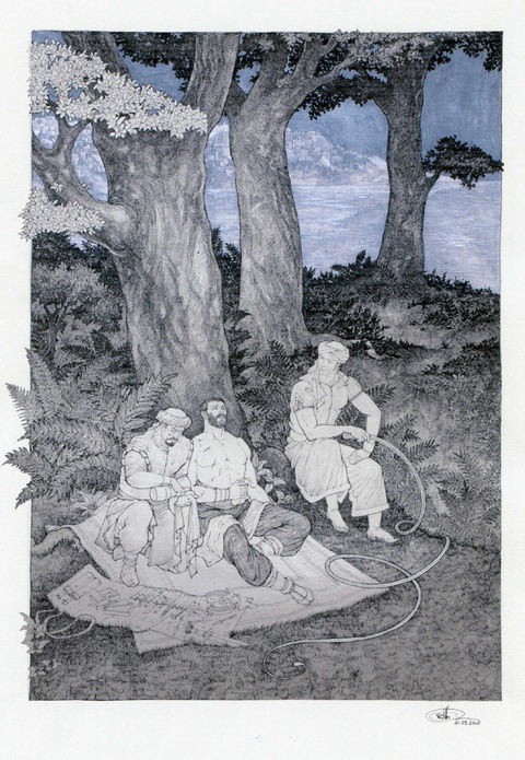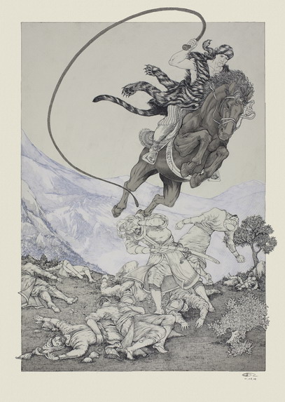 David Matchavariani , diplômé de l’Académie des Arts de Tbilissi depuis 1993 est né en 1976 . C’est à partir de 1997 qu’il s’est lancé dans une carrière d’illustrateur et de designer . Il effectue également des dessins d’animation cinématographiques. En outre, il a organisé quelque expositions, en solo, mais également en commun avec d’autres artistes. Il vit à Tbilissi et travaille sur commande pour divers éditeurs situés à l’étranger . L’année 2011 a vu l’achèvement de son travail d’illustration du « Chevalier à la peau de Tigre (Vèpkhvis tkhaosani *) de Chota Roustaveli»