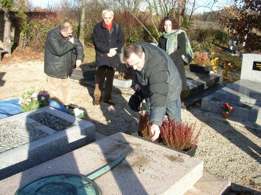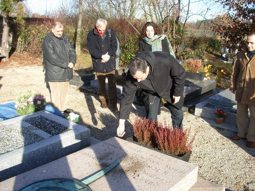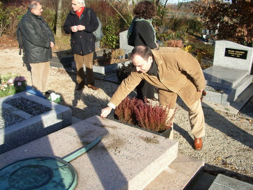 Pourquoi ai-je pris l'initiative de la création de ce Pont symbolique ? Lors de mon récent séjour à Tbilissi, à l'occasion du rapatriement de la dépouille du Prince Kakoutsa Tcholokhachvili, j'ai rencontré sa Sainteté, le Patriarche de Géorgie Ilia II qui m'a posé les questions suivantes : "La dépouille Kakutsa Tcholokachvili vient d'être transférée à Tbilissi...avez vous une idée sur le prochain transfert ? Ne serai-t'il pas souhaitable de rappatrier un jour l'intégralité des corps enterrés au cimetière de Leuville ? Qu'en pensez vous?" Voici ma réponse :"Votre Sainteté, je pense qu'il ne serait pas souhaitable de procéder à d'autres transferts de ce genre. Kakoutsa Tcholokhachvili est le symbole, tant pour l'émigration que pour le peuple géorgien, de la révolte populaire contre l'oppresseur. Son transfert devrait être une exception. A mon avis, il ne saurait y avoir d'autres opérations de ce type, sauf, à la demande expresse des familles des défunts eu égard à la dernière volonté écrite de ces derniers . D'autre part, il me paraît inopportun de faire disparaître les traces des sépultures géorgiennes de l'émigration. Ces monuments appartiennent à l'Histoire de la Géorgie et en constituent les traces indélébiles de la lutte de nos parents et ancêtres pour le rétablissement de l'indépendance de leur Pays. Voici ce que je vous propose : J'ai déjà prélevé de la tombe de Kakoutsa de la terre fraîchement remuée et j'ai l'intention, dés mon retour en France, d'en répandre sur sa tombe à Leuville, ainsi que sur les tombes de ses conjurés également morts en France. Par ce geste , se créera un Pont Symbolique entre le Panthéon de Mta Tsminda et le Cimetière de Leuville." Sa Sainteté a dû trouver l'idée bonne car il m'a encouragé dans mon action et m'a donné sa bénédiction. La cérémonie officieuse a eu lieu le 17 décembre 2005 à 11 heures . Vous trouverez ci dessous le texte qui est parvenu aux différents journaux géorgiens ainsi que des photos de l'événement. Othar Pataridze Ancien Président de l'Association Géorgienne en France simboluri xidi mTawmindis panTeonsa da levilis sasaflaos Soris sruliad saqarTvelos kaTolikos-patriaqis, uwmindesisa unetaresis ilia II locva-kurTxeviT, mTawmindidan, qaquca ColoyaSvilis saflavidan wamoRebuli miwa daeyara qaqucas da misi Seficulebis saflavebs levilSi. es RonisZieba Catarda SabaTs, 17 dekembris dilas. amgvarad, mTawmidis panTeoni levilis sasaflaos simboluri xidiT daukavSirda. am araoficialur ceremonias eswrebodnen : saqarTvelos elCi safrangeTSi, qalbatoni naTia jafariZe, saelCos ufrosi mrCeveli, batoni zurab erisTavi, safrangeTSi qarTuli saTvistomos warmomadgenlebi, batoni oTar patariZe, batoni mirian melua da batoni luka melua, ivane javaxiSvilis saxelobis Tbilisis saxelmwifo universitetidan - batoni goCa saitiZe da batoni kaxaber korZaia, saarbrukenis universitetidan - batoni zaza kilasonia. oTar patariZe