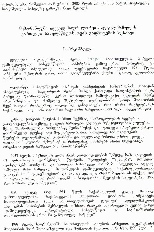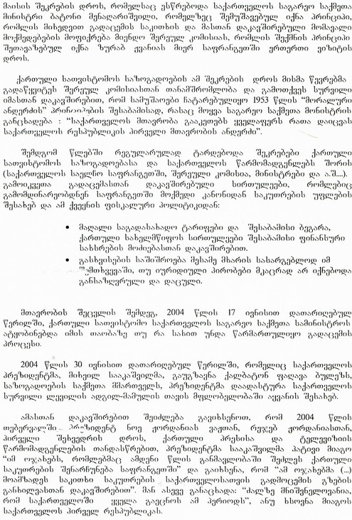 de la Société "Foyer Géorgien" a été envoyé au Président Mikheil