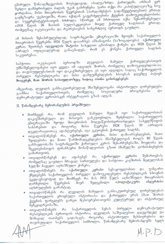Saakashvili. Ce courrier était accompagné d'un mémorandum, rédigé en