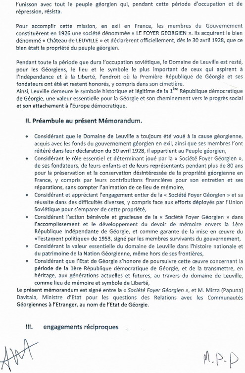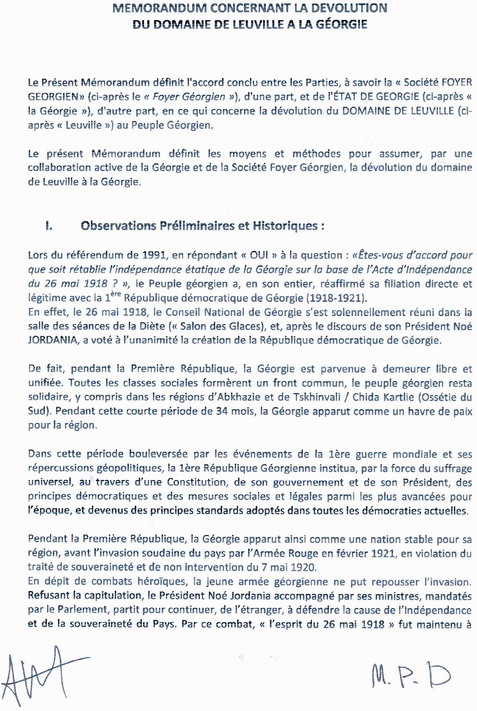 domaine de Leuville sera définitivement cédé à la Géorgie. Quelle en est