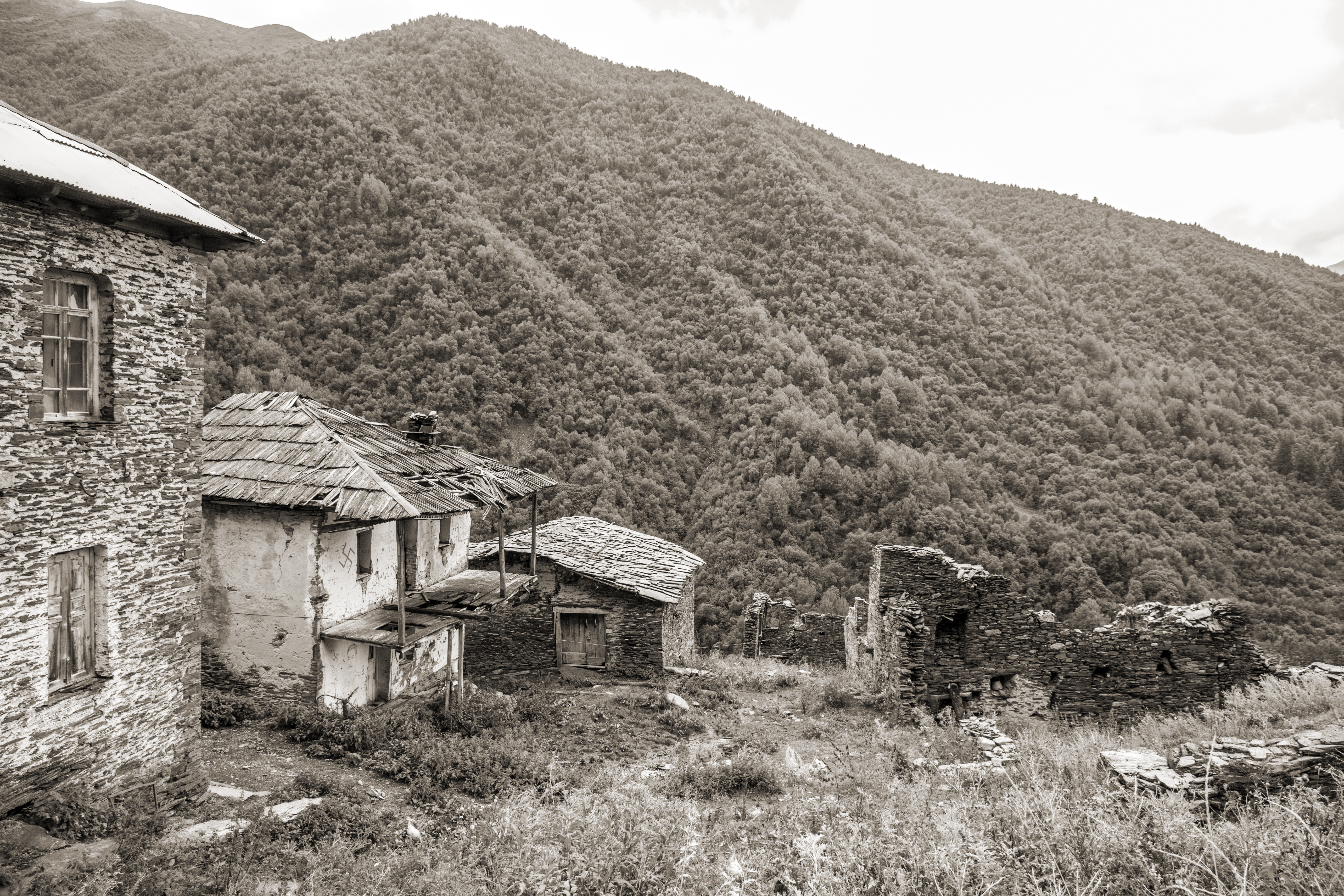 “AN ORDINARY VILLAGE BECOMES FAMOUS IF A BIG WAR TAKES PLACE THERE” VICTOR HUGO. Spread over the slopes of the Caucasus, the village of Khalde is situated at an altitude of 2,100 meters above sea level and was regarded as the highest populated area in Europe. According to eyewitness accounts, outward beauty of Khalde exceeded that of all the other villages of free Svaneti. Khalde was never distinguished by the multitude of population. Because of severe natural conditions (the village is covered with snow for six months in a year) it was difficult to survive here. Despite this fact, the indigenous community of Khalde matched their lifestyle with nature; they lived strict, but, at the same time, unrestricted and free lives, were loyal to their forefathers’ creed, traditions and confined themselves to the land of their ancestors. The residents of Khalde were “proud, agile and resistant to toil. They had no equal throughout Svaneti by their physique, rejoicing, singing and round dancing”. Prior to the rebellion, only 19 households resided Khalde; there were mainly four clans – Gasvianis, Jokhadzes, Choplianis and Chegianis. Each of them owned a couple of two-storey mortared stone houses, and the village boasted eleven towers (murkvami) that had both defensive and residential functions. A church dedicated to the Savior stood in the center of the village.